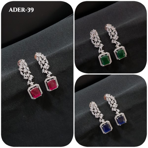 EARRINGS BRASS RHODIUM COLOUR Red / Green / Gold SIZE ADJUSTABLE / FREE SIZE – ADER-39 GREEN