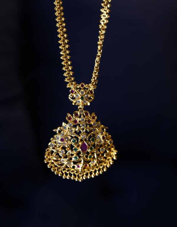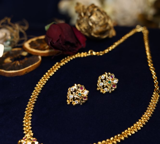 NECKLACE SET BRASS MICRO GOLD PLATED COLOUR GOLD SIZE FREE SIZE – 14302PBEAUTIFUL GOLD PLATED INDIAN TRADITIONAL SOUTH JEWELRY
