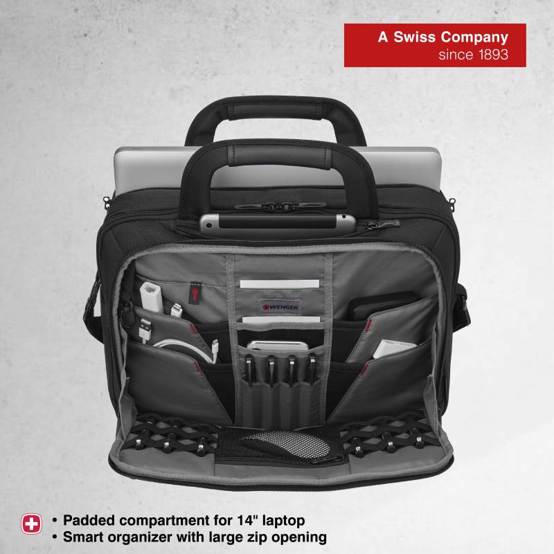 A trusted Swiss company since 1893, brings to you the BC collection fuses modern design with premium functionality. Sleek, understated & perfectly formed, it’s a classic range for busy professionals who need to know their everyday essentials are secure, accessible & easy to find. Sophisticated & contemporary, the BC Pro is a laptop brief that really delivers. The adjustable laptop compartment protects devices from 14”-16”, & the SmartOrg organization panel offers easy access & optimum arrangement for your everyday essentials. Find the perfect stylish yet versatile companion for your active, mobile lifestyle in the Wenger travel gear collection. From the house of Victorinox- the makers of the Original Swiss Army Knife.