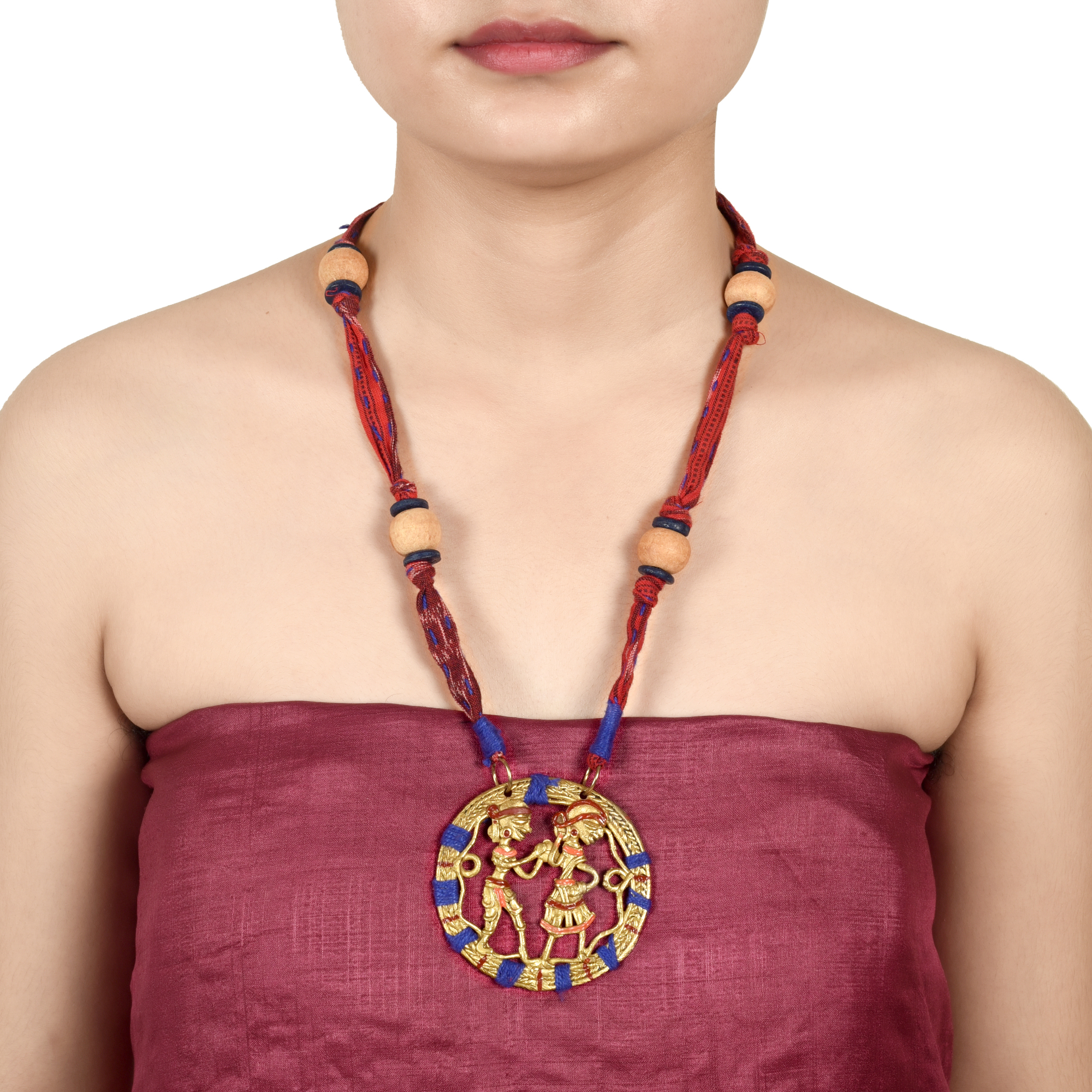 The Tribal Circle Handcrafted Dhokra Necklace Blue & Red Colour Size 6x6x33 – Article – AAC-40-01-09-F